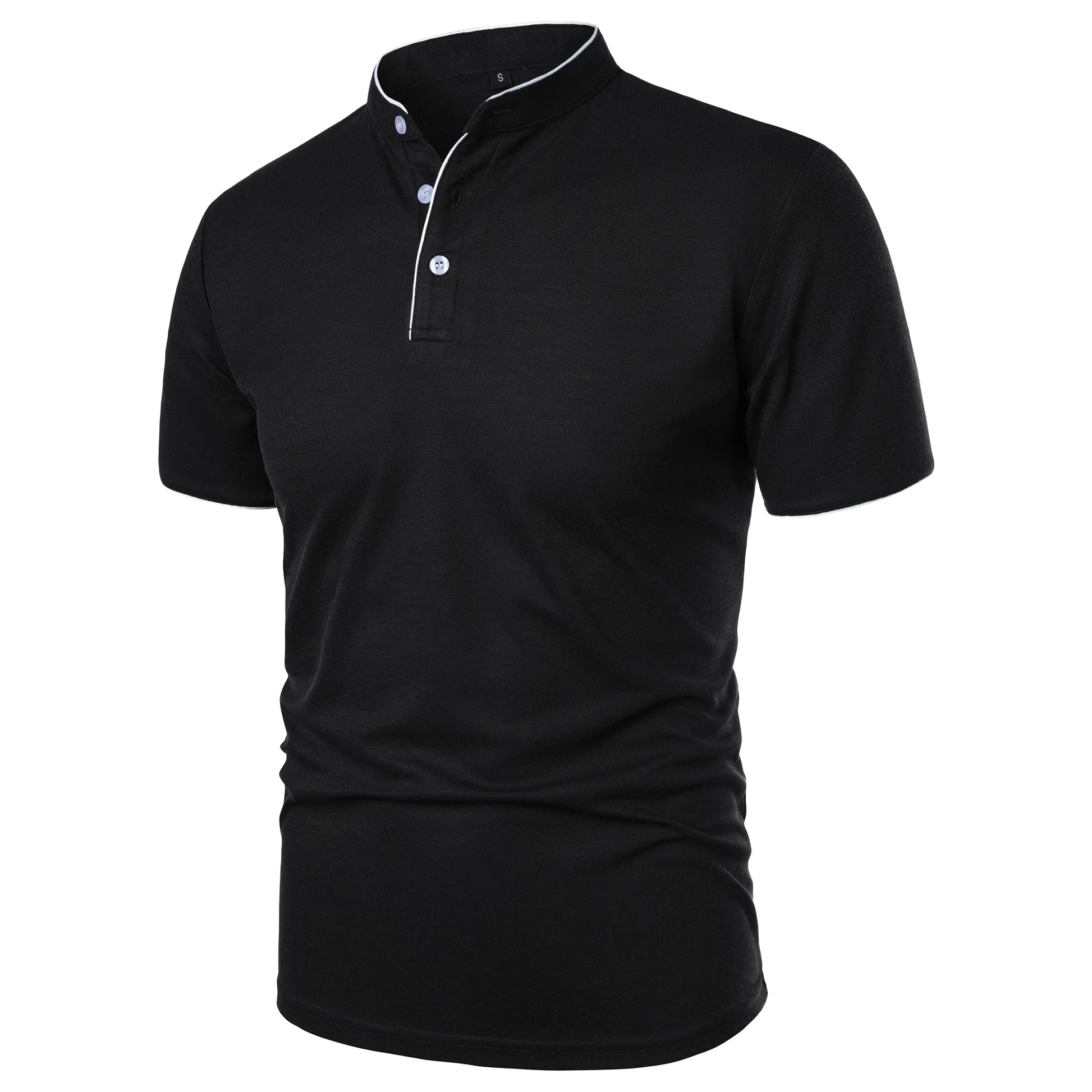 Men's short-sleeved stand-up collar top casual fashion daily solid color short-sleeved stand-up collar T-shirt casual top
